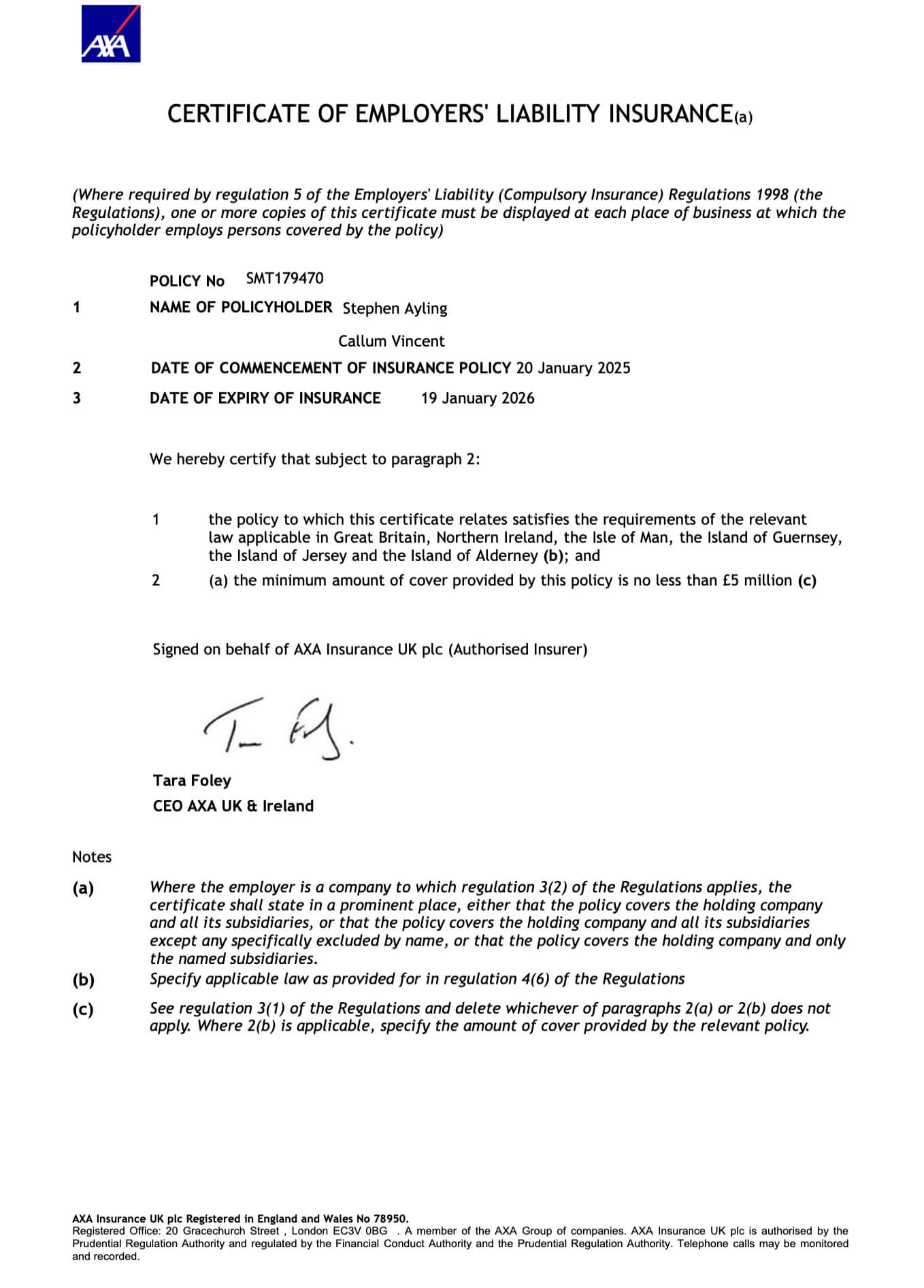 here you can view or download a copy of our Employers Liability Insurance Certificate (£5-10m)